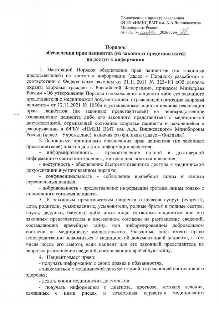 Порядок работы с обращениями граждан в ФГБУ НМИЦ ВМТ им.А.А.Вишневского Минобороны России