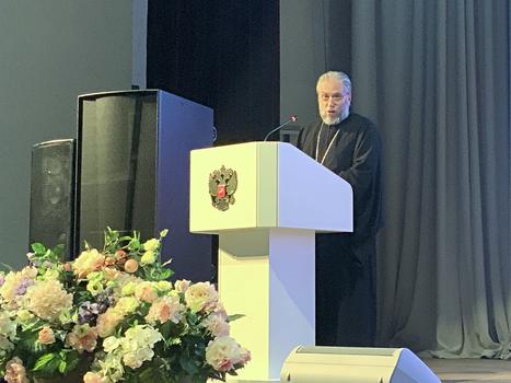 В рамках взаимодействия Русской православной церкви с военно-медицинскими организациями МО РФ по оказанию помощи раненым, пострадавшим во время участия в СВО, и их духовному окормлению на конференции в НМИЦ ВМТ им. А.А. Вишневского МО РФ выступил с речью исполняющий обязанности благочинного Красногорского церковного округа г. Красногорска, настоятель Знаменского храма протоиерей Владимир.