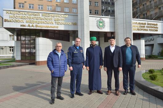 27 сентября ФГБУ “НМИЦ ВМТ им. А.А. Вишневского” МО РФ посетил Дауд хазрат Мухутдинов — Имам-мухтасиб Централизованной религиозной организации "Мухтасибатское собрание мусульман Московской области" при Духовном собрании мусульман России. Его сопровождал Имам Московского муфтията, помощник главы Духовного собрания мусульман России Ильнур хазрат Гайнутдинов.