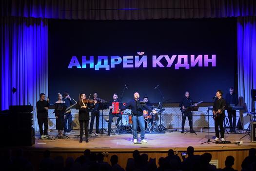 На сцене клуба НМИЦ ВМТ им. А. А. Вишневского МО РФ с новой программой “ПРО100 Я” выступил доктор богословия, член Союза писателей РФ, кавалер значимых христианских наград, писатель, поэт и исполнитель авторских песен в стиле русского шансона Андрей Кудин со своей группой.
