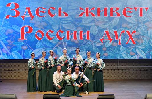 На сцене клуба НМИЦ ВМТ им. А.А. Вишневского МО РФ в поддержку военнослужащих - участников СВО и медиков выступил ансамбль русской песни “Брусника” с программой “Здесь живет России дух”.