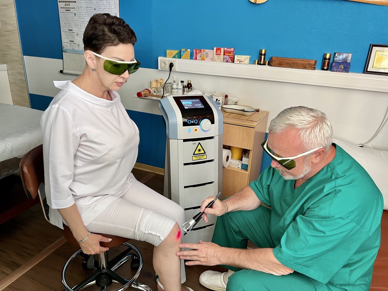 Лечение проводит заслуженный врач РФ, невролог и рефлексотерапевт высшей категории БОНДАРУК Владимир Васильевич. Врачебный стаж 38 лет, стаж в области ударно-волновой терапии 25 лет. Первичная специализация получена в Швейцарии (1997 г.) Имеется авторская методика сочетания ударно-волновой терапии с остеопатией и иглоукалыванием в лечении боевой и спортивной травмы.