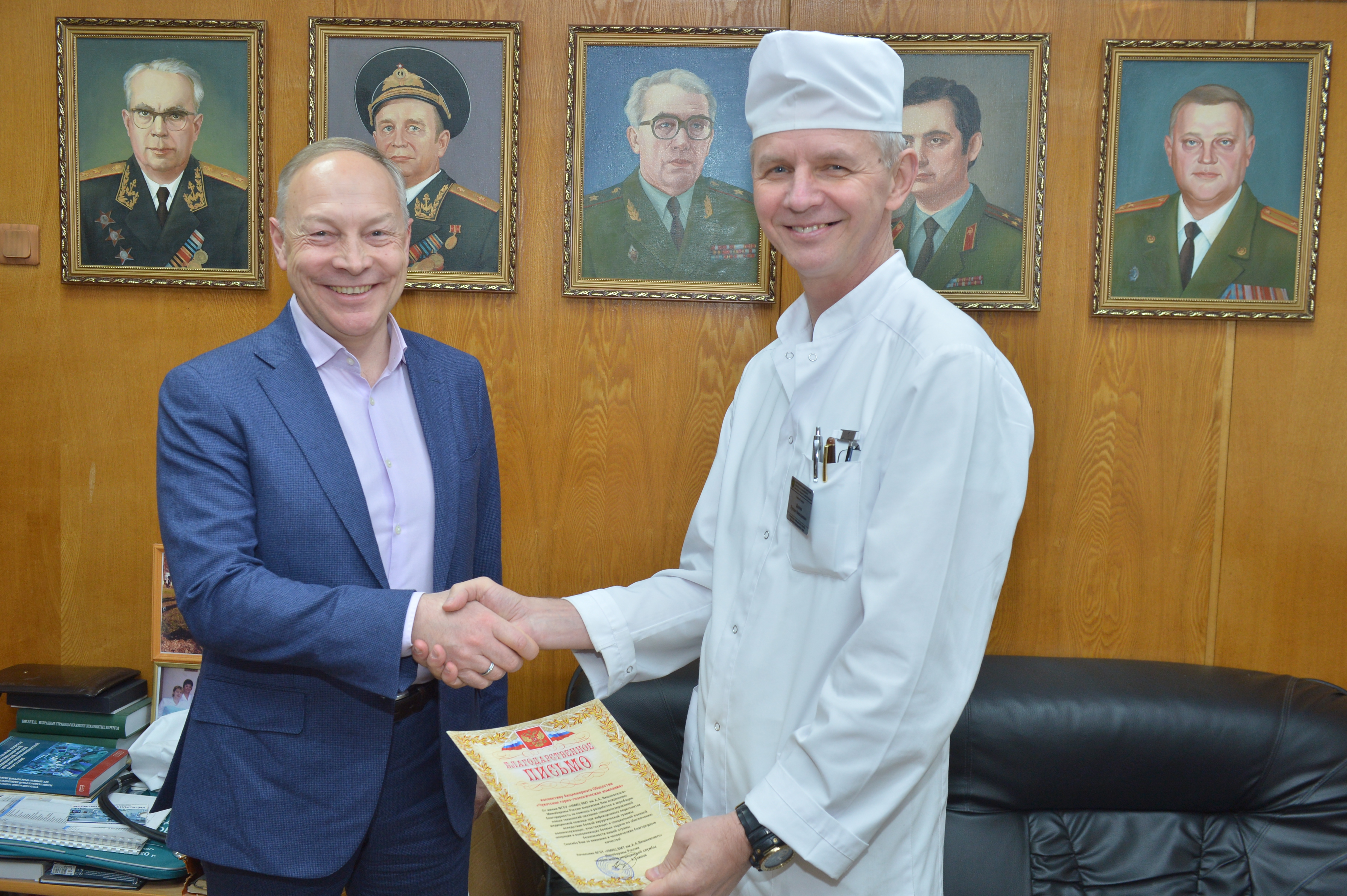 От имени НМИЦ ВМТ им. А.А. Вишневского МО РФ выражаем директору Международной Ассоциации “Качество Жизни” Согияйнен Вадиму Алексеевичу искреннюю благодарность за помощь в разработке и апробации новых технологий оказания специализированной медицинской помощи при инфекционных перитонитах вследствие боевой хирургической травмы военнослужащих.
