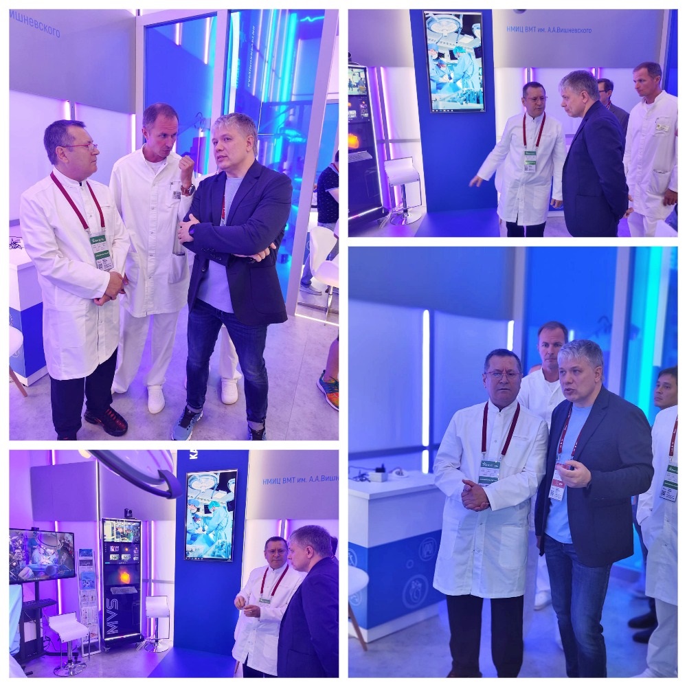Во время активной подготовки к форуму стенд НМИЦ ВМТ им. А. А. Вишневского, отметившего в июне свой 55-летний юбилей, посетил начальник ГВМУ МО РФ Тришкин Дмитрий Вячеславович. Он с интересом пообщался с врачами Центра, которые лично участвовали в организационном процессе, и обсудил с ними ряд профессиональных вопросов.