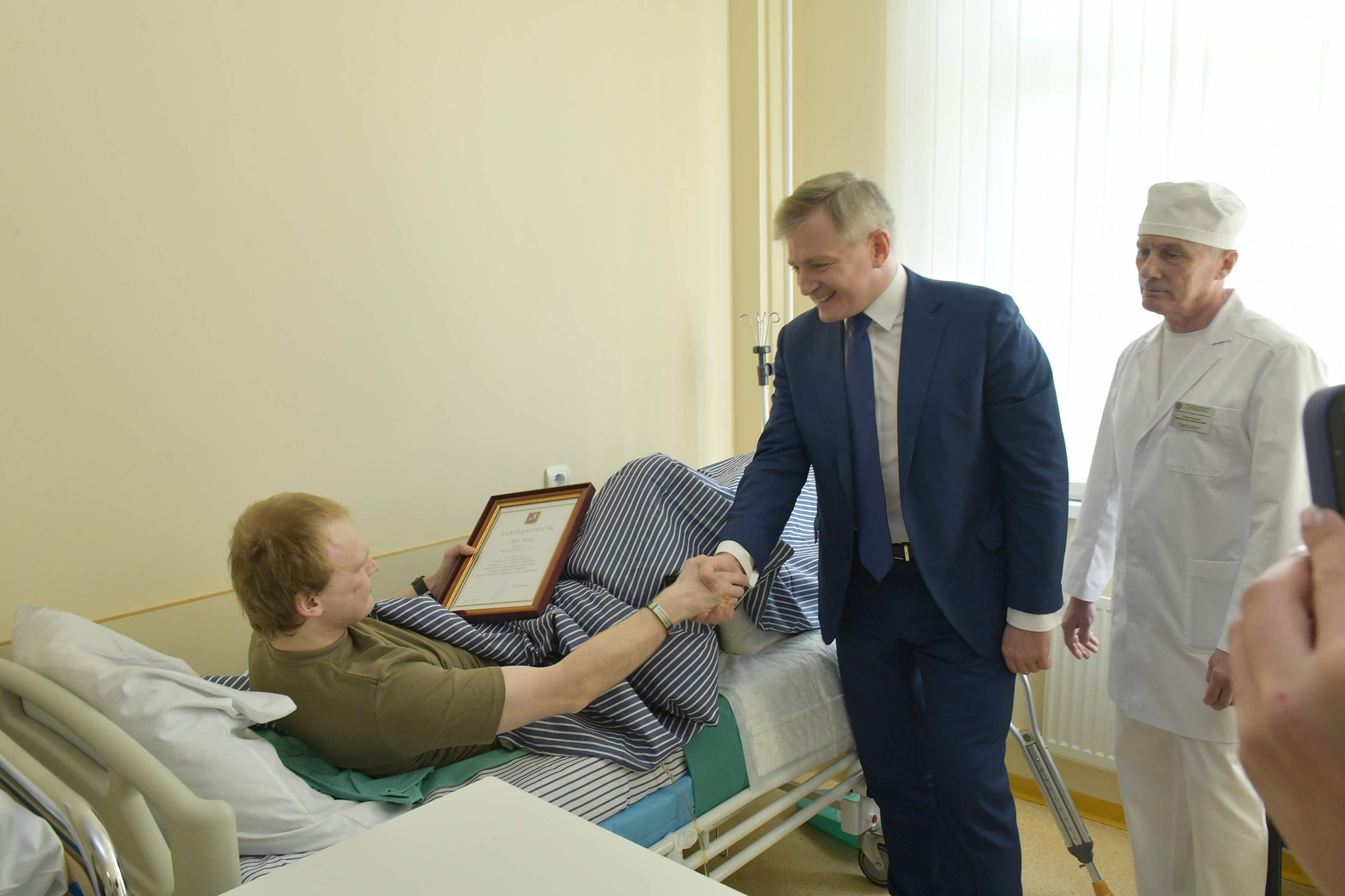 Пациент поблагодарил гостей за проявленную заботу, а врачей - за высокий профессионализм.