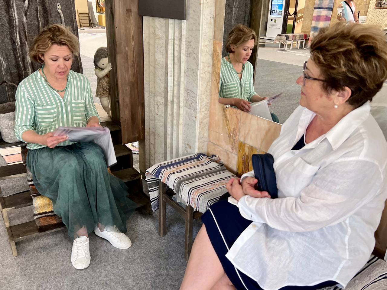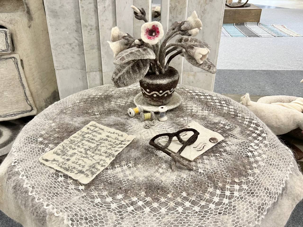 Автор общается с посетителями, даёт потрогать шерсть, из которой творит сюжеты, читает свои не выдуманные хорошо написанные истории про землянику, про шитьё-бытьё, про окно, про всё, что запомнило её сердце. Всем этим она щедро делится с пациентами и сотрудниками госпиталя.
