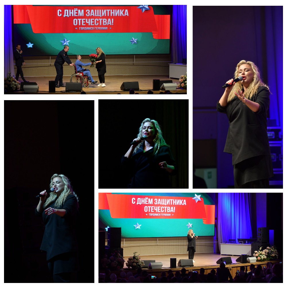 Анна Семенович и вокальная группа “Республика” поздравили с Днём защитника Отечества героев СВО на сцене клуба НМИЦ ВМТ им. А.А. Вишневского МО РФ.