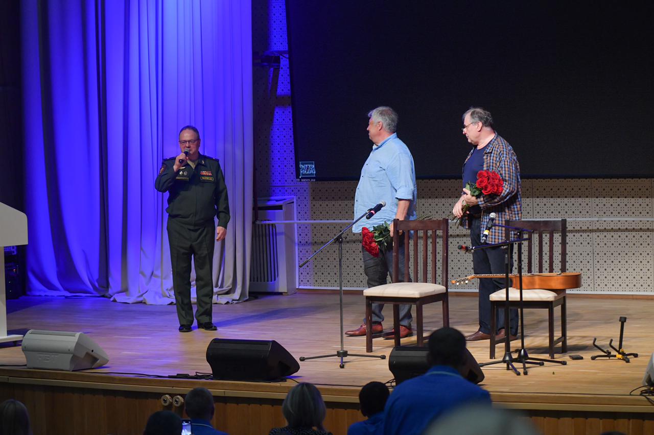 Актёр театра и кино, кинорежиссер, Народный артист РФ Сергей Степанченко и актер, музыкант, бард, лауреат 1-го конкурса им. Андрея Миронова Максим Кривошеев подготовили для медиков и пациентов госпиталя Вишневского музыкальную программу. Они исполнили песни из советских кинофильмов и из репертуара известных советских артистов. Выступление сопровождалось комментариями актеров, которые всегда были любимы зрителями за их открытость и прекрасное чувство юмора.