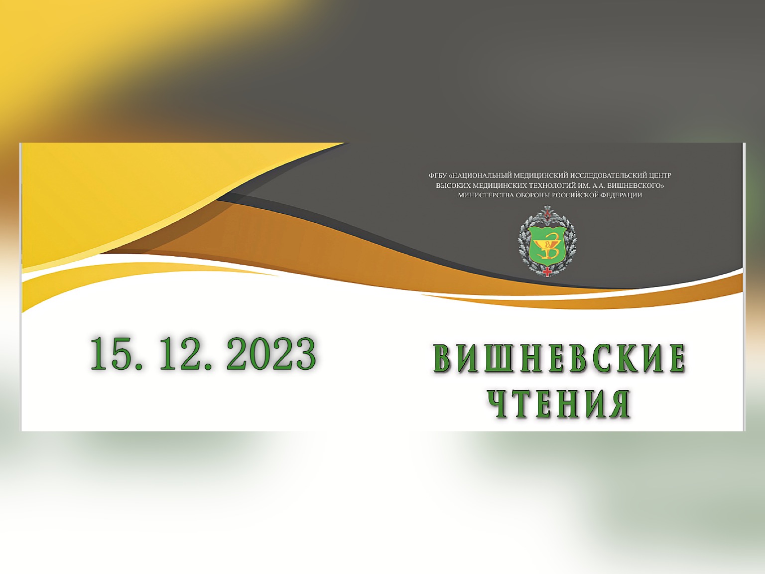 15 декабря 2023 года в Национальном медицинском исследовательском центре высоких медицинских технологий - Центральном военном клиническом госпитале им. А. А. Вишневского МО РФ состоится ежегодная научно-практическая конференция “Вишневские чтения - 2023”, посвященная академикам А. В. Вишневскому и А. А. Вишневскому.