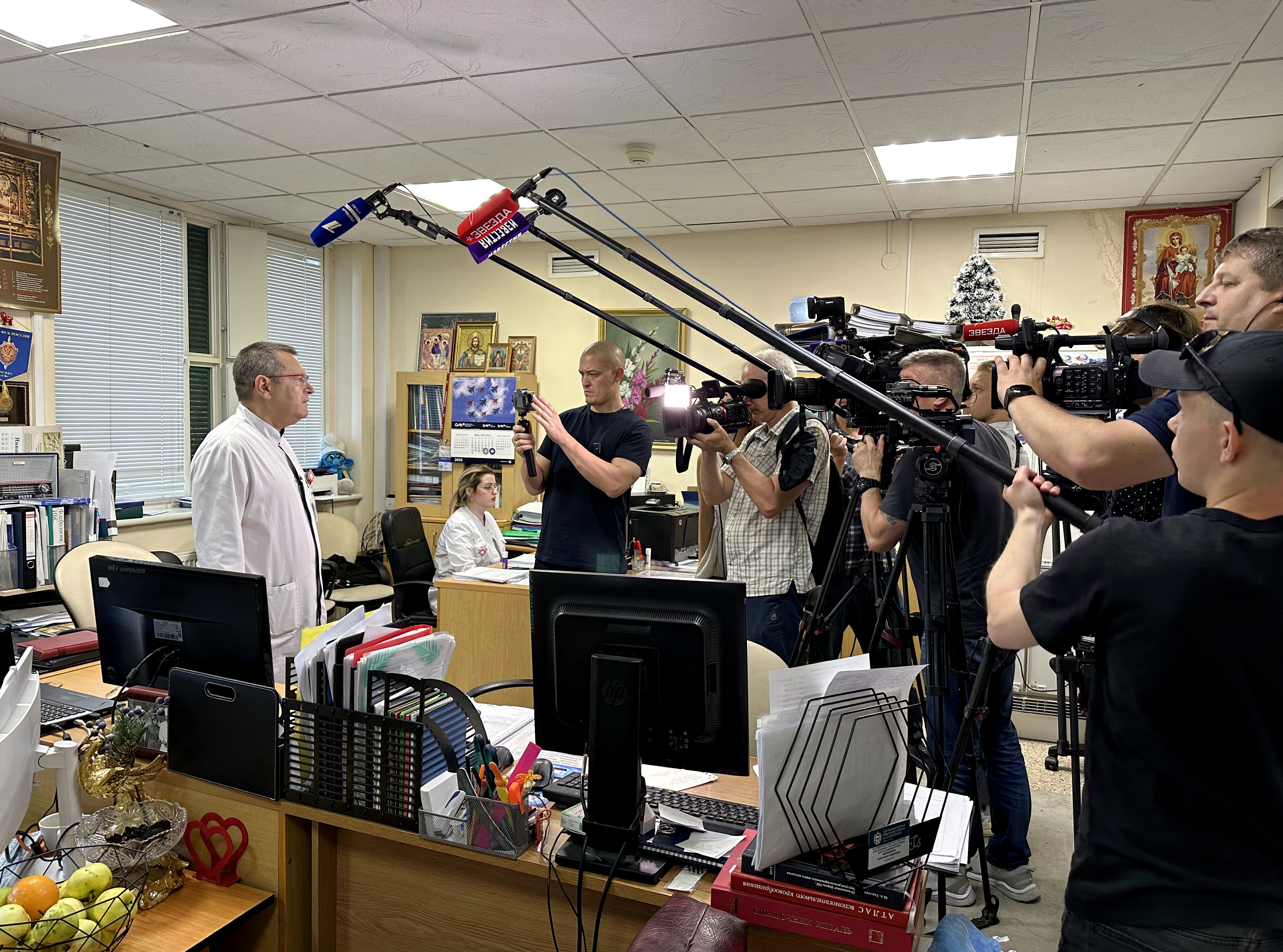 Кардиохирургами были приглашены представители СМИ, наблюдавшие за процессом вначале на экранах мониторов, установленных в ординаторской центра кардиохирургии, а затем - непосредственно в операционной.