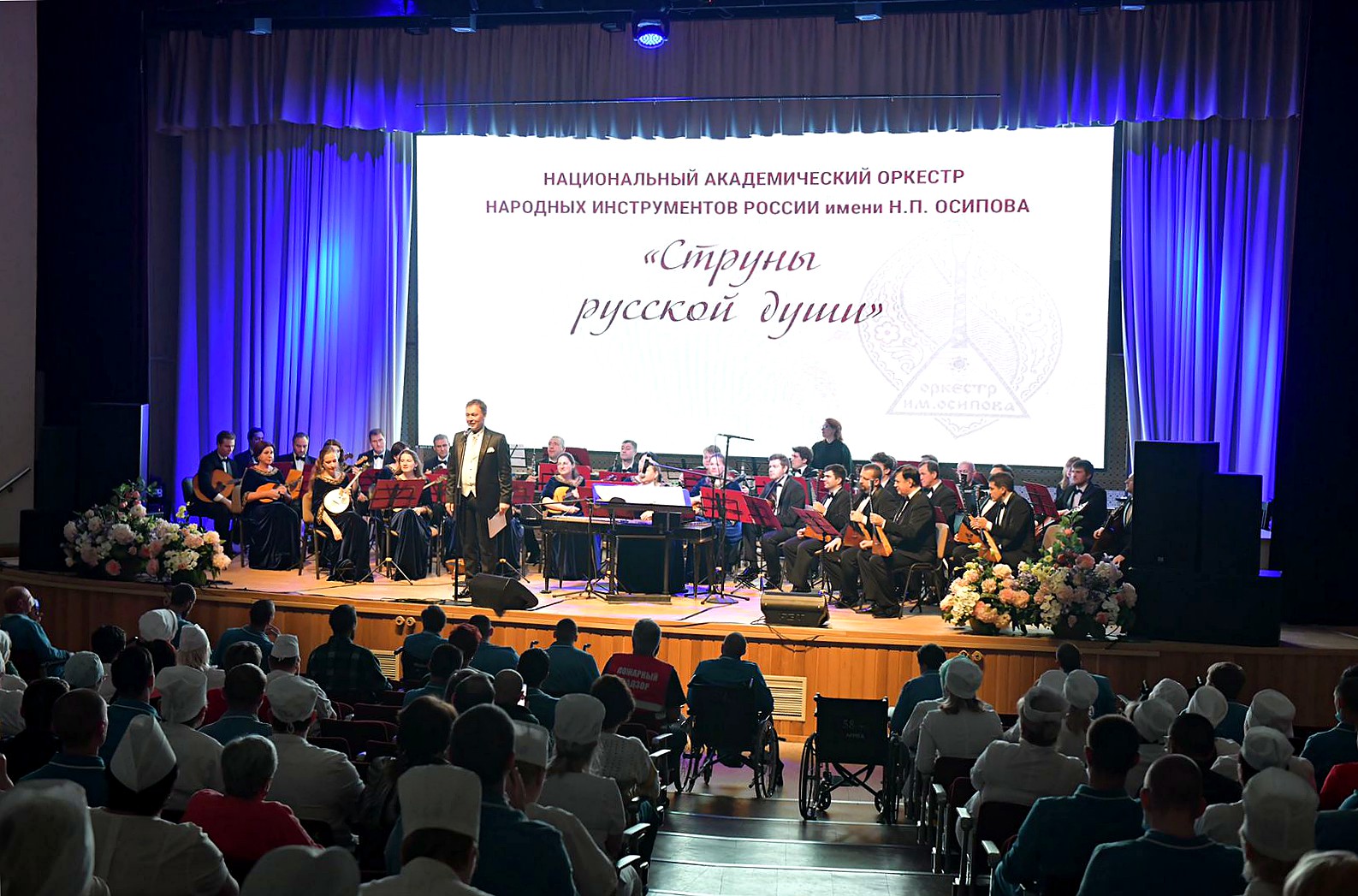 В клубе НМИЦ ВМТ им. А. А. Вишневского МО РФ состоялся концерт Национального академического оркестра народных инструментов России имени Н. П. Осипова “Струны русской души” в поддержку раненых военнослужащих и медиков.