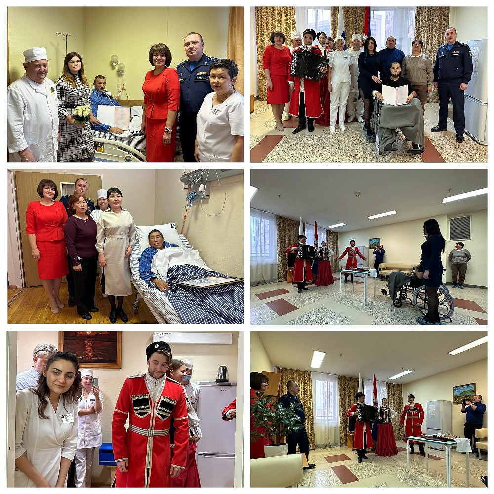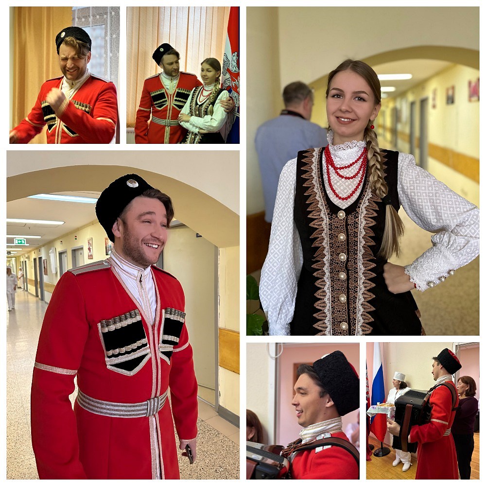 Дополнило праздник выступление приехавших в госпиталь Вишневского солистов Ансамбля песни и пляски “Красная звезда” РВСН Григория Пешкова, Яны Гадисовой и Хайдара Хамидуллина. Начальник ансамбля - майор Жевняк Антон Викторович.
