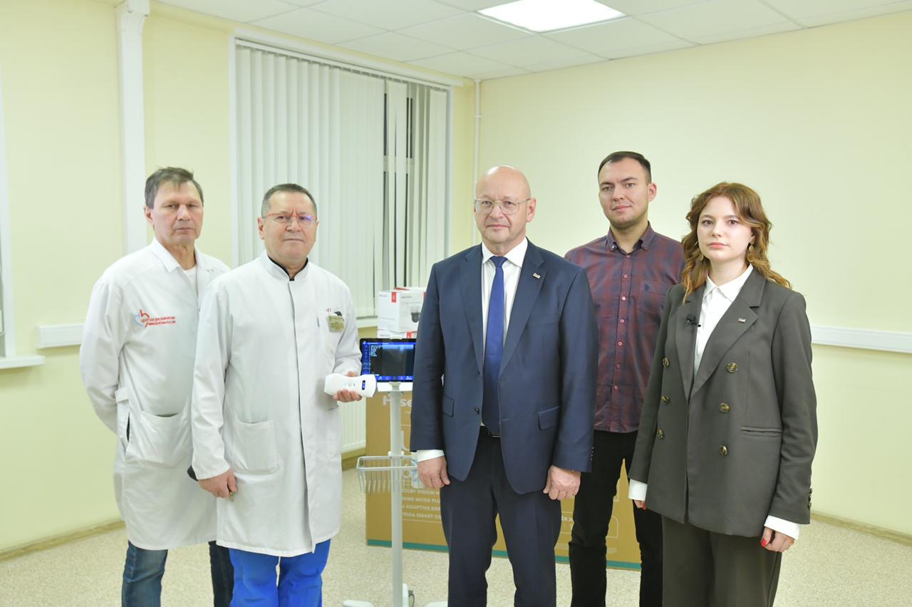 Начальник кардиохирургического центра профессор Александр Николаевич Лищук лично принял преподнесенный в дар прибор, поблагодарив гостей и отметив с радостью, что врачи госпиталя Вишневского смогут лично оценить высокое качество ультразвуковой аппаратуры российского производства, получившей новые возможности развития в рамках программы импортозамещения.