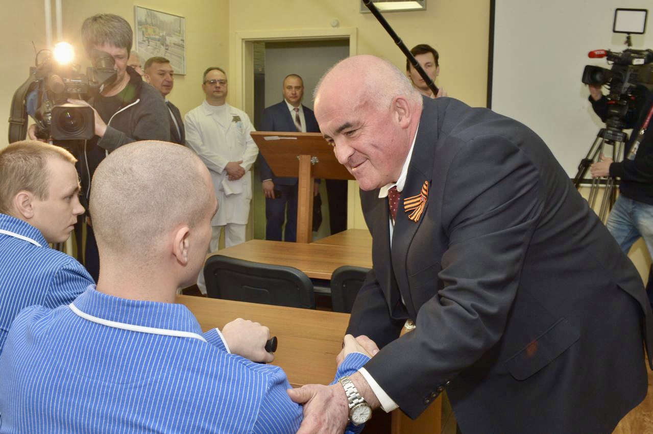 Пять орденов «Мужества», три медали «Суворова» и знак отличия ордена «Святого Георгия — Георгиевский Крест» IV степени вручил участникам специальной военной операции по защите Донецкой и Луганской республик заместитель начальника главного управления кадров Министерства обороны России генерал-лейтенант Юрий Бобров. Награждение прошло в Центральном военном клиническом госпитале имени А.А. Вишневского в Красногорске.