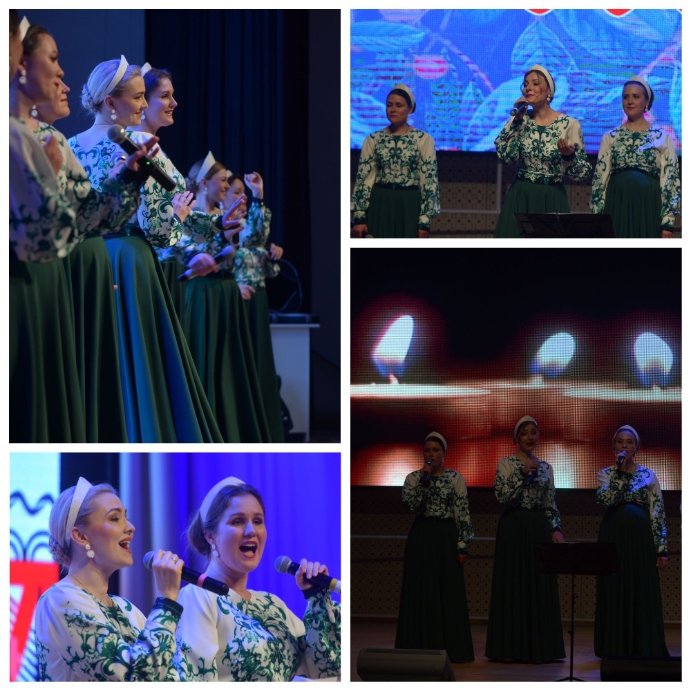 На сцене клуба НМИЦ ВМТ им. А.А. Вишневского МО РФ в поддержку военнослужащих - участников СВО и медиков выступил ансамбль русской песни “Брусника” с программой “Здесь живет России дух”.