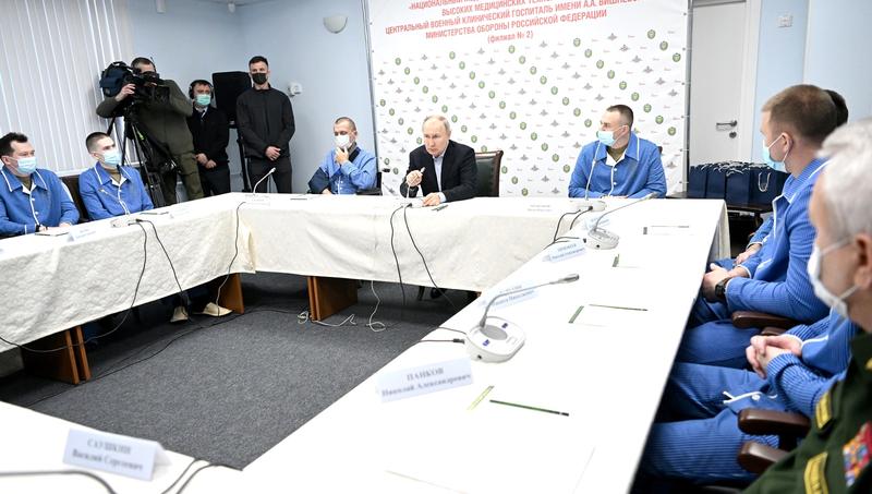 Президент РФ Владимир Путин посетил филиал № 2 ФГБУ «Национальный медицинский исследовательский центр высоких медицинских технологий – Центральный военный клинический госпиталь имени А.А.Вишневского» Министерства обороны, в котором проходят лечение военнослужащие Вооружённых Сил, получившие ранения в ходе специальной военной операции.