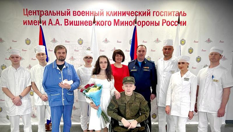14 апреля 2023 года в НМИЦ ВМТ им. А.А. Вишневского МО РФ состоялось бракосочетание Людмилы и Леонида, самой молодой пары из тех, что зарегистрировали свой брак в этих стенах с начала проведения СВО.