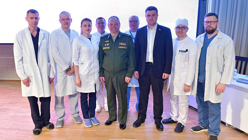 В конференц-зале НМИЦ ВМТ им. А.А. Вишневского МО РФ 31 марта 2023 года состоялось рабочее выездное совещание парламентской координационной группы по вопросам специальной военной операции, где рассматривались вопросы всестороннего медицинского обеспечения участников боевых действий.