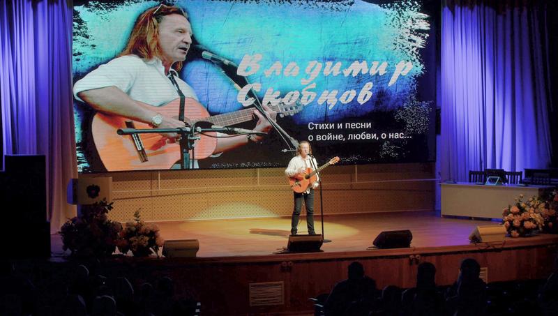 На сцене клуба НМИЦ ВМТ им. А.А. Вишневского МО РФ выступил известный исполнитель авторской песни, прозаик, поэт, член Союза писателей ДНР, член Союза писателей России, один из соавторов сборника гражданской поэзии Донбасса “Час мужества”, автор неофициального гимна Донбасса “Донбасс за нами” Владимир Скобцов.