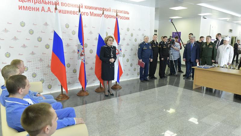 Председатель Совета Федерации Федерального собрания РФ Валентина Матвиенко посетила 3-й Центральный военный клинический госпиталь имени А.А. Вишневского, где вручила 11 военнослужащим государственную награду – медаль «За отвагу». Ещё шесть военнослужащих получили медали из рук Героя России, председателя комитета Совета Федерации Федерального собрания РФ по обороне и безопасности Виктора Бондарева.